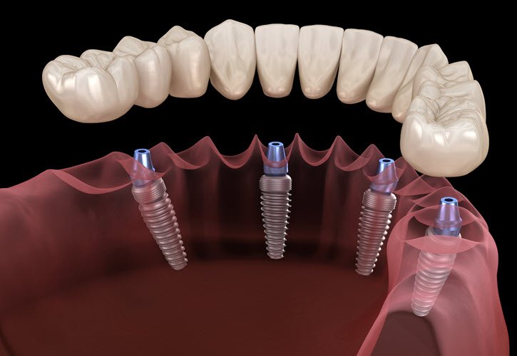 Full-arch implant-supported bridges (All-on-4 type)